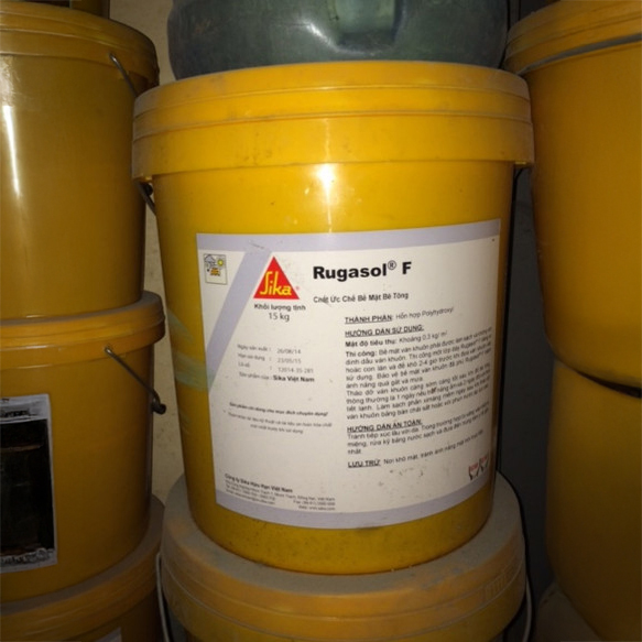 - Sika Rugasol F: chất ức chế dạng sệt thi công lên ván khuôn để tạo các bề mặt hoàn.